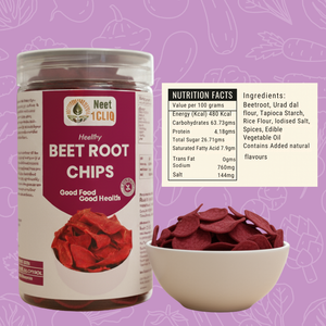 Made from farm-fresh beetroots, these chips are thinly sliced and crisped to perfection. Packed with natural sweetness, earthy flavor, and vibrant color, they’re a healthy alternative to regular snacks.